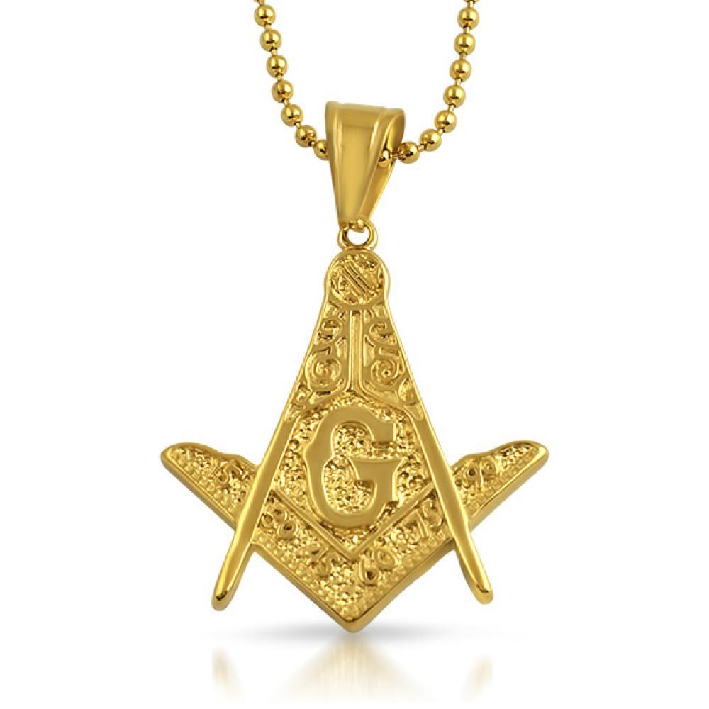 Masonic Detailed Medium Free Mason Pendant Gold Steel