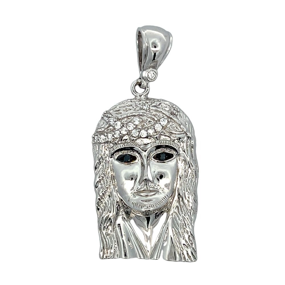 Rhodium Jesus Iced Pendant Detailed Piece