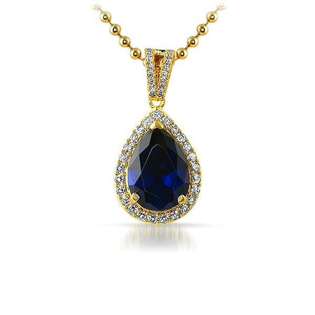 .925 Silver Blue Pear Cut Gem Iced Out Gold Pendant