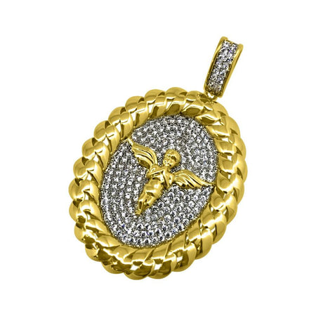 .925 Silver Cherub Angel Gold Cuban Oval CZ Pendant