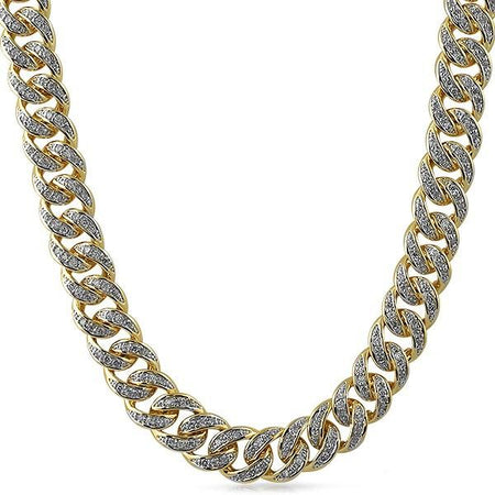 .925 Sterling Silver CZ 13MM Cuban Chain Gold