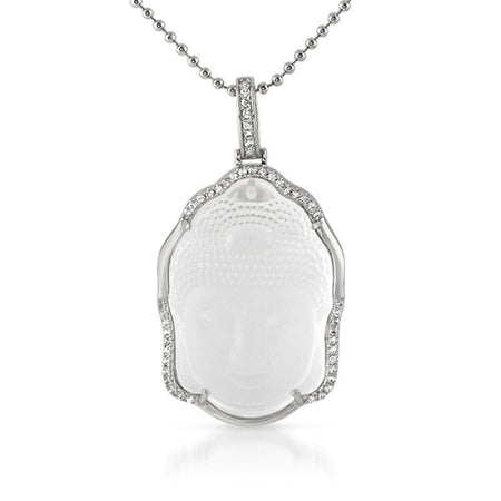 Buddha Carved Frosted Crystal Pendant Rhodium Bling Outline