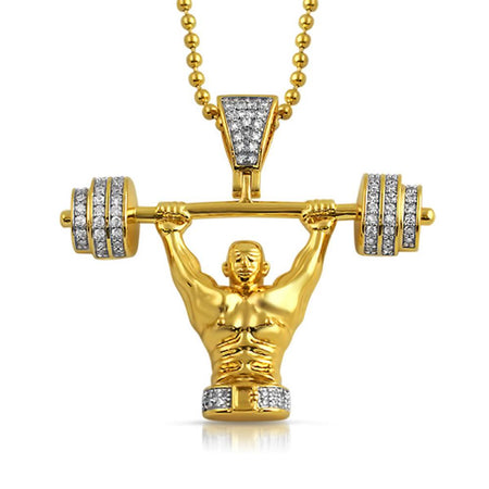 Champion Weightlifter 3D Gold CZ Bling Bling Pendant