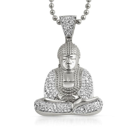 CZ Sitting Buddha Micro Pave Pendant Rhodium