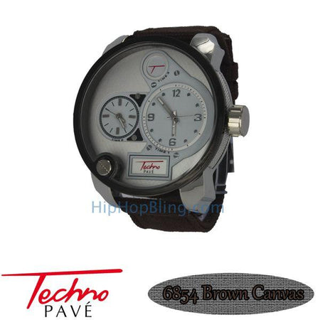 Dual Time Zone Watch Brown Canvas Band