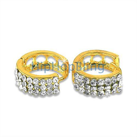 Gold 3 Row Bling Bling Huggie Earrings