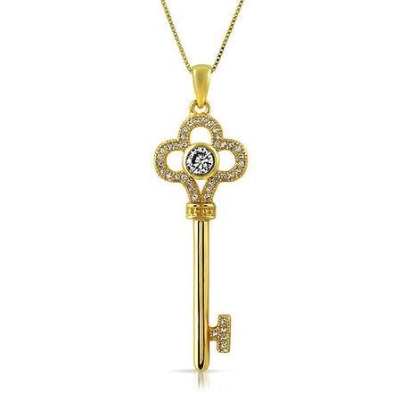 Gold Clover Key .925 Sterling Silver Pendant CZ