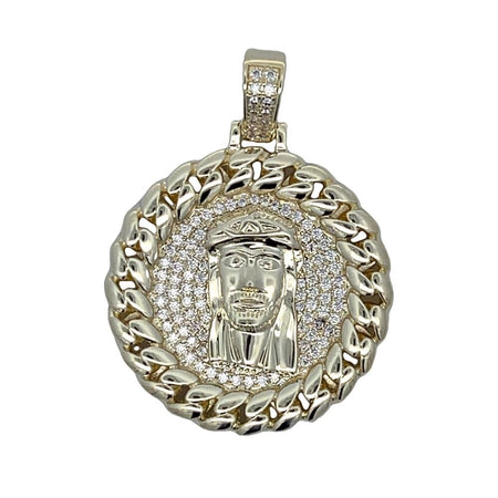 Gold Cuban Jesus Medallion CZ Iced Out Pendant