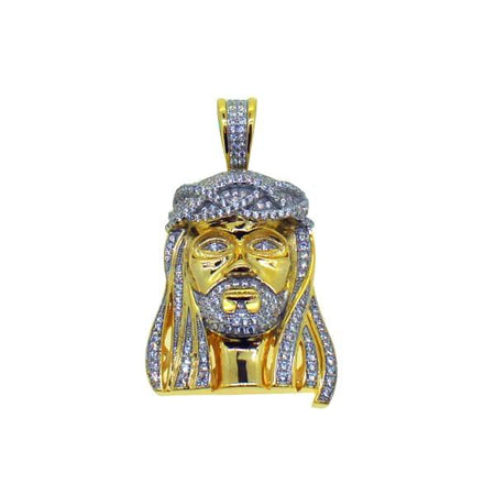 Gold Jesus Pendant CZ Micro Pave Set .925 Silver