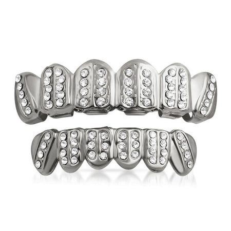 Grillz Ice Bars Silver Teeth Top Bottom Set