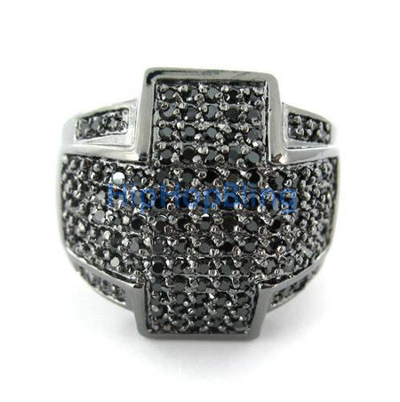 Iced Out Cross Wraparound Black CZ Mens Ring