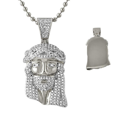 Iced Out Micro Jesus Rhodium Pendant Solid Back