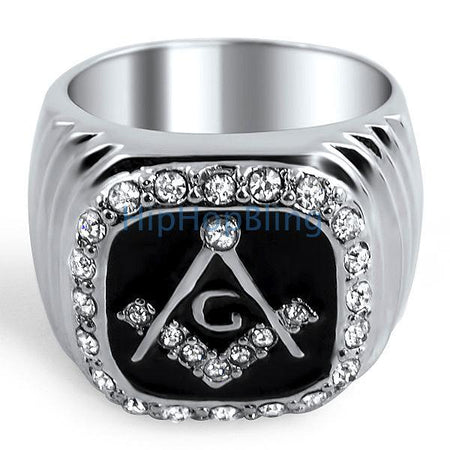 Masonic Bling Bling Mens Ring
