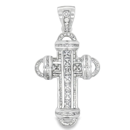 Princess Cut Disc Cross CZ Iced Out Pendant