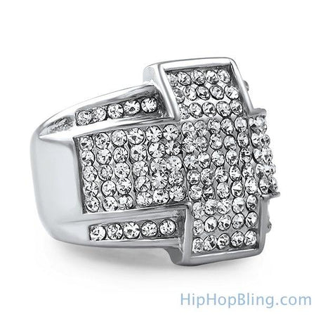Stainless Steel Cross Bling Bling Ring