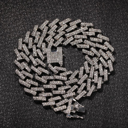 White Gold 15MM Sharp Cuban Bling Bling Chain