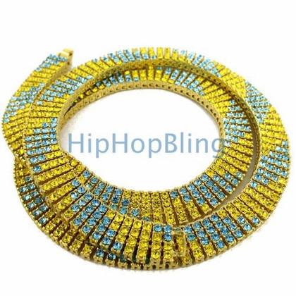 Yellow & Blue Candy Cane Gold 4 Row Bling Bling Necklace